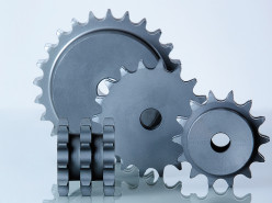 - Standard Einzelkomponenten wie Rollenketten, Kettenräder und Kettenspanner sowie einem Getriebemotor mit Schneckengetriebe