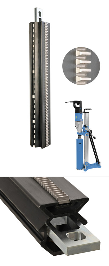 Der Kunde nutzte das Know-how von Nozag um innerhalb kürzester Zeit die passende Lösung für eine Hubbewegung via Zahnstange zu realisieren. Dank unseren Spezialisten konnte das Element schnell und klar berechnet und gleichzeitig die Standardprodukte geprüft werden. Die Zahnstange SG2020 mit 2000 mm Einbaulänge und Modul 2 war perfekt geeignet. Das Normteil wurde innert 24 h einbaufertig weiterbearbeitet und konnte so dem Kunden übergeben werden. Das Tyrolit-Produkt für Kernbohrungen funktionierte damit auf Anhieb perfekt.